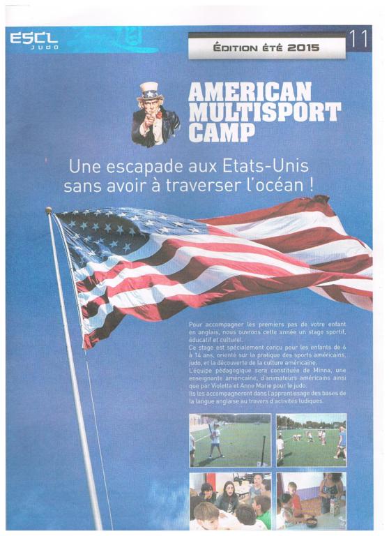 Du lundi 6 au vendredi 10 juillet, nous organisons un stage d'anglais avec initiations aux sports américains, à la cuisine, aux arts plastiques, chansons, jeux, théâtre, judo....